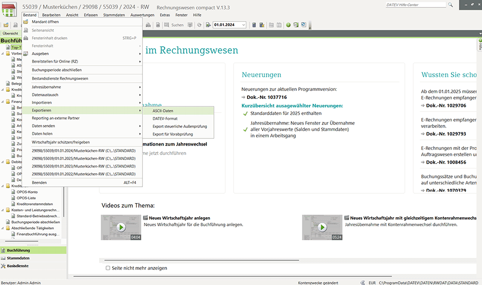 Voraussetzung: Öffnen Sie zunächst das ASCII-Export-Fenster in DATEV, wie in Schritt 1 der Standard-Exportanleitung beschrieben: